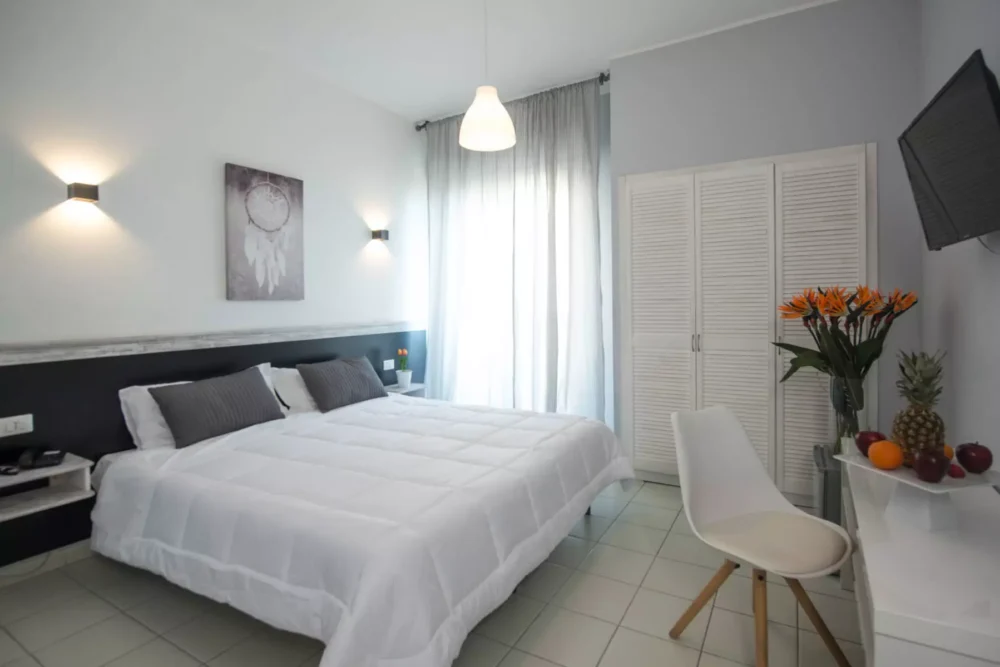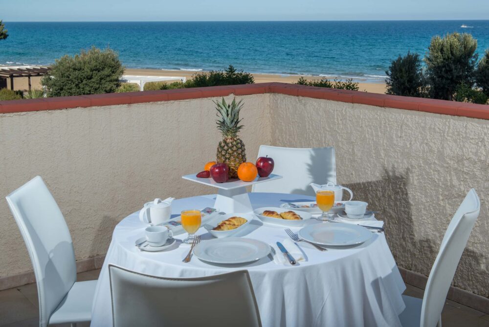 Le camere con balcone vista mare offrono le stesse dotazioni delle camere standard, con l’aggiunta di un balcone che si affaccia direttamente sul mare, regalando panorami mozzafiato e momenti di puro relax.